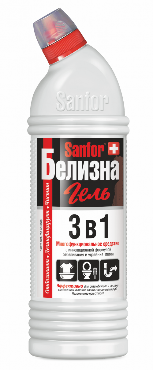 Отбеливатель Белизна-гель 700мл SANFOR 3в1 (Санфор 3в1) для отбеливания и чистки тканей 1/15