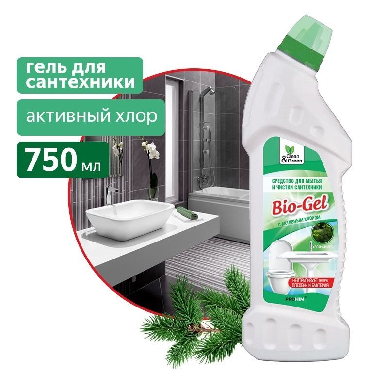 Средство жидкое 750мл чистящее гель для сантехники Bio-Gel Clean&Green 1/8 купить в Перми по низкой цене оптом и дешево с доставкой