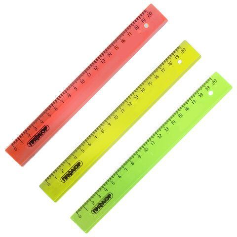 Линейка 20см пластиковая прозрачная неоновая Пифагор 1/20 купить оптом и в розницу в Перми