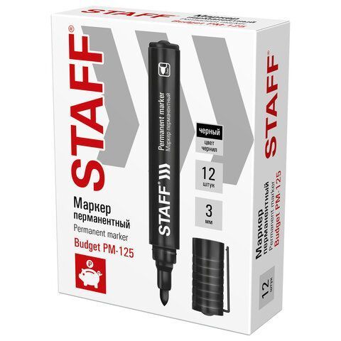 Маркер перманентный черный 3мм круглый наконечник Basic STAFF 1/12/1200