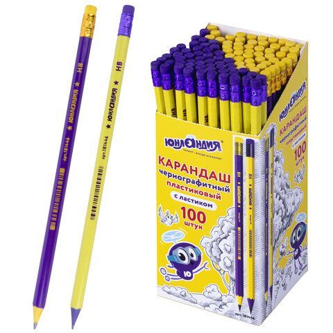 Карандаш ч/гр НВ пластиковый корпус ассорти с резинкой Юнландия 1/100 купить оптом и в розницу в Перми