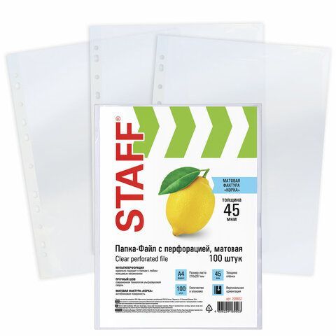 Перфофайлы А4 45 мкм апельсиновая корка STAFF 100шт 1/30