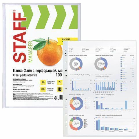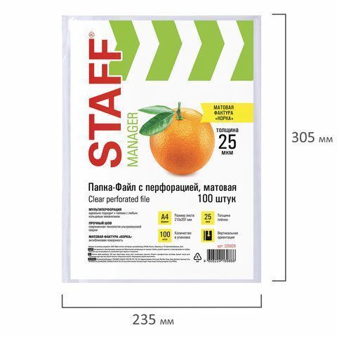 Перфофайлы А4 25 мкм матовые STAFF ЭКОНОМ 1/30 купить оптом и в розницу в Перми