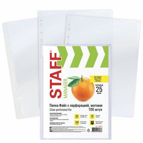 —Перфофайлы А4 25 мкм матовые STAFF ЭКОНОМ 1/30