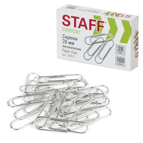 —Скрепки 28мм 100шт металлические эконом STAFF 1/10