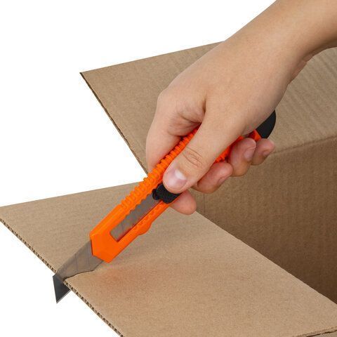 Нож канцелярский 18мм с фиксатором упаковка с европодвесом Staff 1/24/576 купить оптом и в розницу в Перми