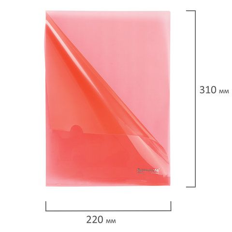 Папка-уголок А4 прозр. красная 0,15мм BRAUBERG 1/15