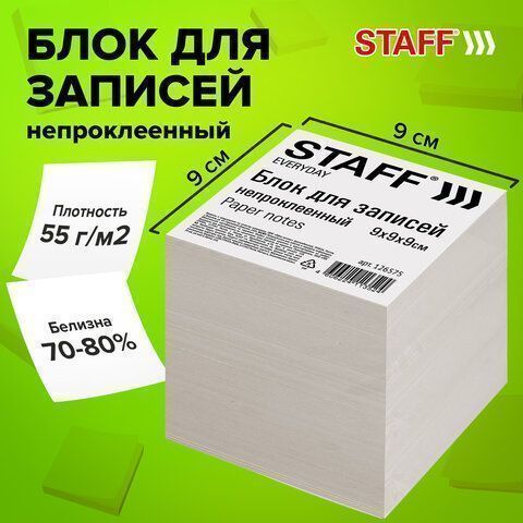 Блок для записей 9х9х9 белый непрокл. белизна 70-80% STAFF 1/18 купить оптом и в розницу в Перми