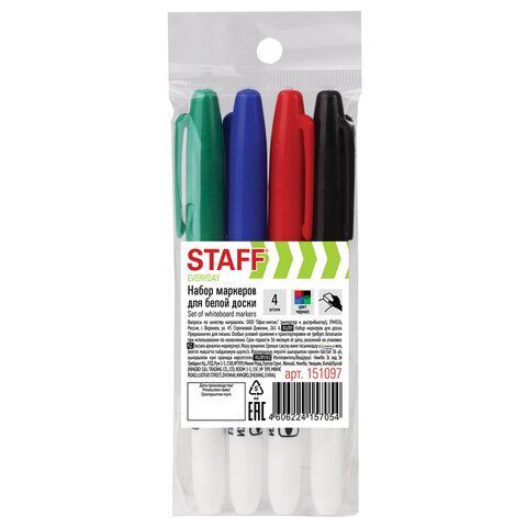 Маркер для доски НАБОР 4шт 2-5мм тонкий корпус круглый наконечник STAFF 1/36/288 купить оптом и в розницу в Перми