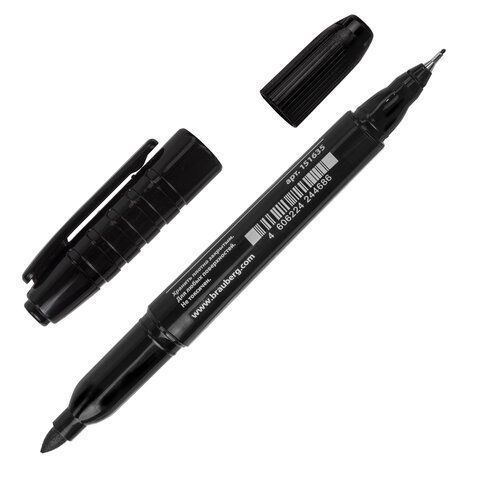 Маркер перманентный черный 0,8/3мм двусторонний наконечники Double BRAUBERG 1/12 купить оптом и в розницу в Перми