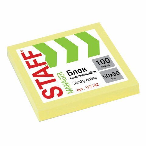 Блок самоклеящийся 50х50мм 100л желтый пастель STAFF 1/12/384