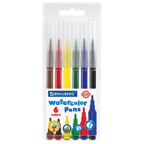 Фломастеры 06цв классические, вент. колпачек, европодвес BRAUBERG PREMIUM 1/48 купить оптом и в розницу в Перми