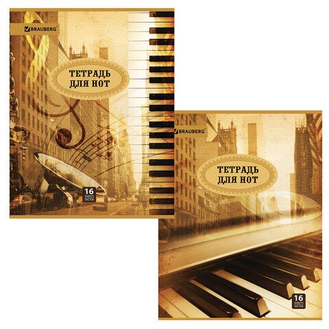 Тетрадь для нот А4, 16л., BRAUBERG обл.мел.карт., вертикальная, Город звуков (2 вида), 125415