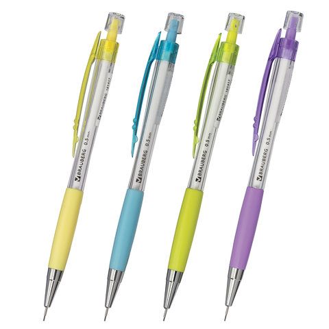 Карандаш ч/гр НВ механический 0,5мм резиновый грип, корпус ассорти BRAUBERG Elegant 1/12 купить оптом и в розницу в Перми