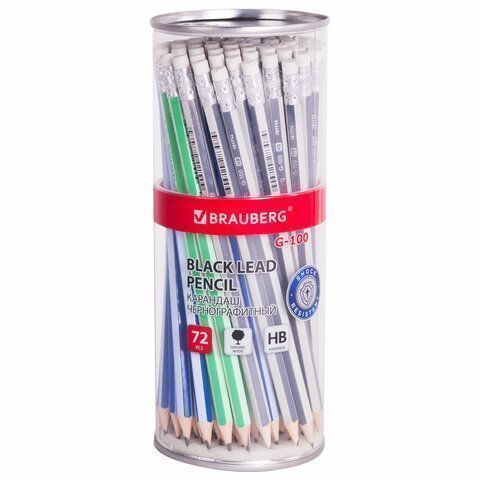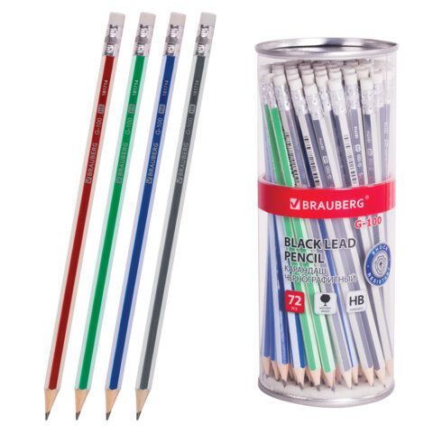 Карандаш ч/гр НВ с ластиком дерево корпус ассорти G-100 BRAUBERG 1/72 купить оптом и в розницу в Перми