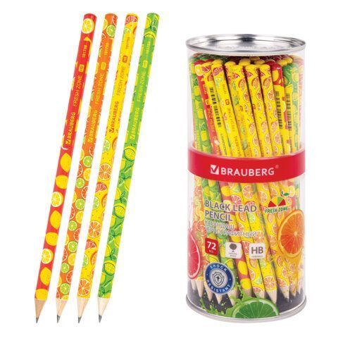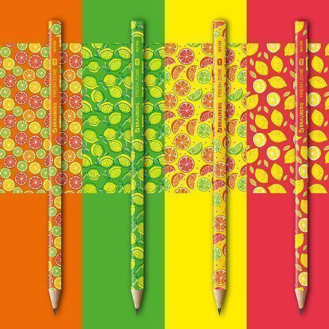 Карандаш ч/гр НВ дерево корпус ассорти FRESH ZONE BRAUBERG 1/72 купить оптом и в розницу в Перми