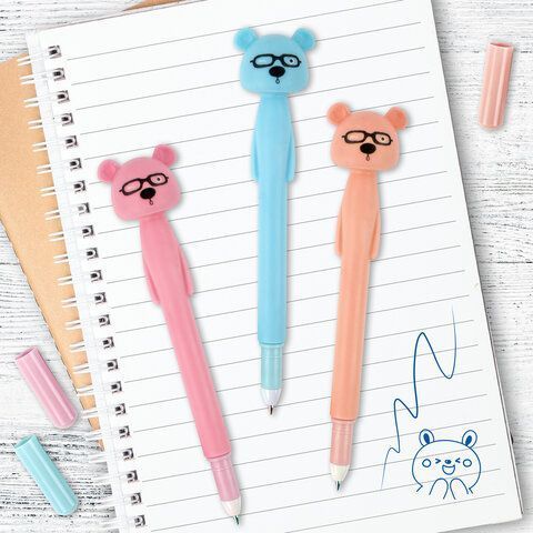 Ручка фигурная МИШКА мягкий корпус 0,35мм, синяя купить оптом и в розницу в Перми