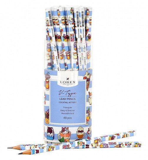 Карандаш ч/гр НВ заточенный трехгранный дерево LOREX V-TYPE COCTAIL KITTENS 1/48 купить оптом и в розницу в Перми