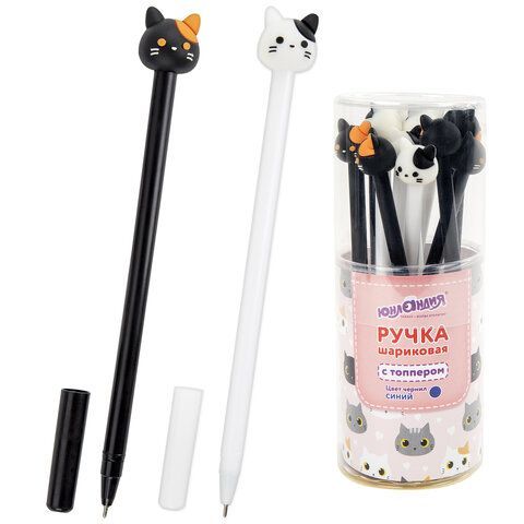Ручка с топпером шариковая ЮНЛАНДИЯ Кошка корпус ассорти СИНЯЯ узел 0,7мм 1/12