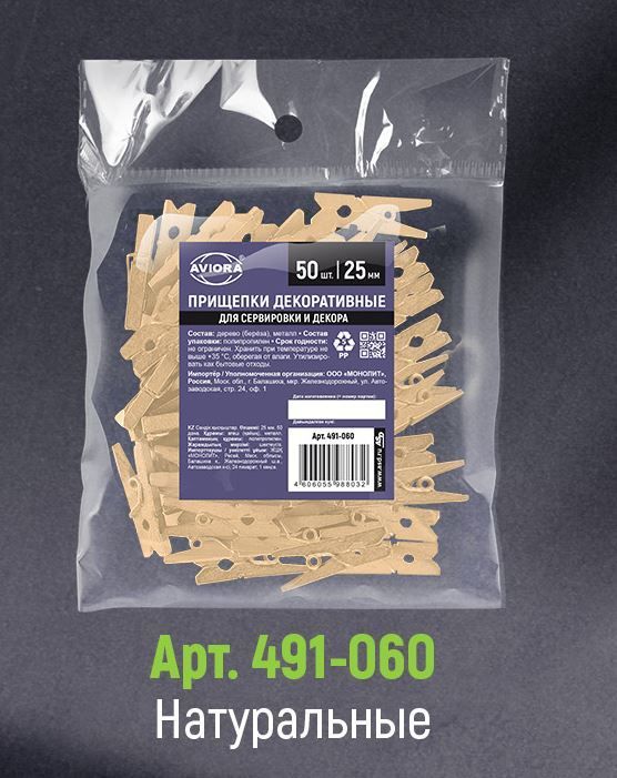 —Прищепки декоративные деревянные крафт 25мм 50шт 1/50