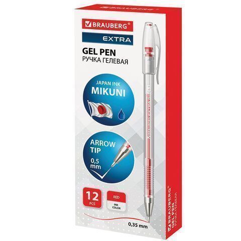 —Ручка гелевая красная 0,5мм линия 0,35мм BRAUBERG EXTRA 1/12