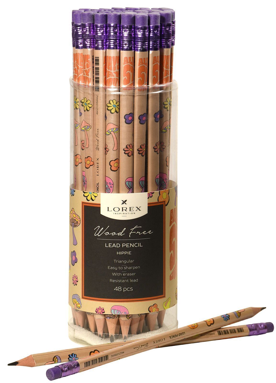 Карандаш ч/гр НВ заточенный трехгранный LOREX WOOD FREE HIPPIE 1/48/576 купить оптом и в розницу в Перми