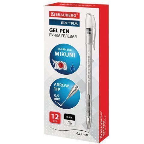 —Ручка гелевая черная 0,5мм линия 0,35мм BRAUBERG EXTRA 1/12
