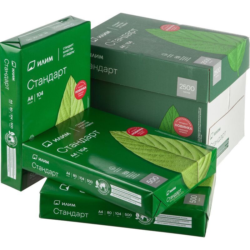 Бумага А4 500л 80г/м2 офисная белизна 146% белая Илим Стандарт 1/5 купить оптом и в розницу в Перми