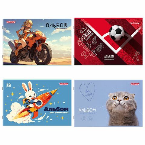 Альбом для рисования 32л А4  скоба обложка картон ПИФАГОР 203х288мм МИКС-1 1/8/40