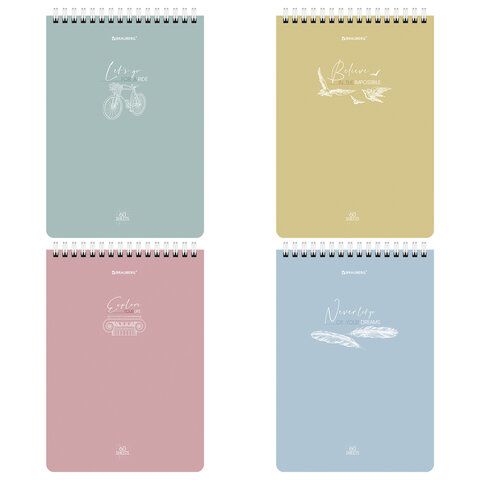Блокнот 60л А5 гребень картон клетка BRAUBERG Pastel 1/4/80 купить оптом и в розницу в Перми