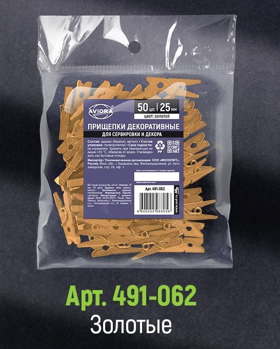 Прищепки декоративные деревянные золотые 25мм 50шт 1/50 купить оптом и в розницу в Перми