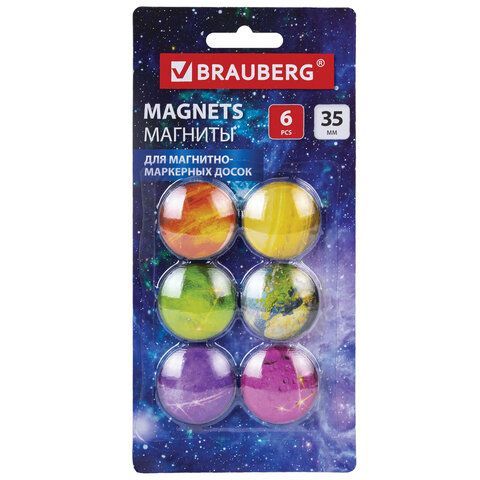 —Магниты BRAUBERG диам 35мм 6шт стеклянные круглые в блистере 1/24/96