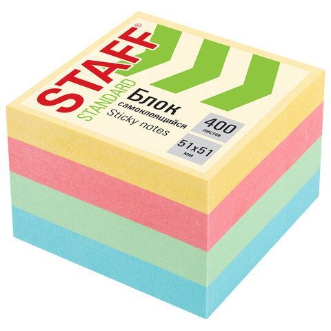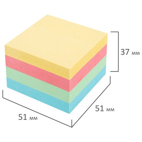—Блок самоклеящийся (стикеры) 51х51мм 400л 4 цв Пастельный BRAUBERG 1/6/144