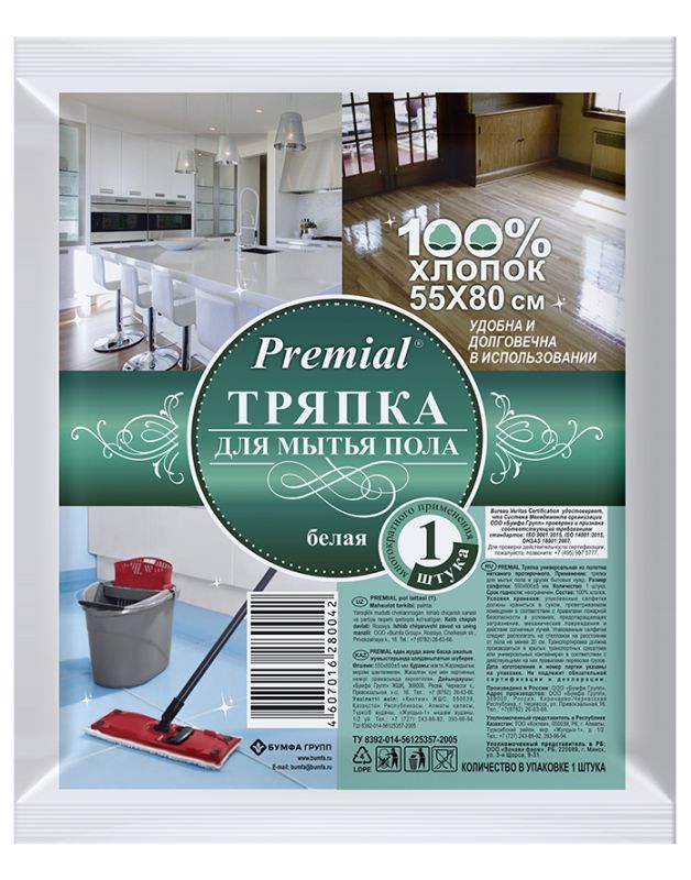 Тряпка для мытья пола (55х80) Premial 100% хлопок 190г/м2 1/30 купить в Перми с доставкой оптом и в розницу