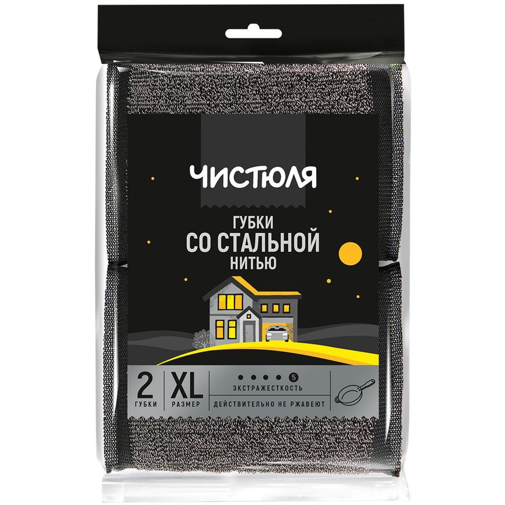 Губка бытовая (2шт) 120х90х15мм со стальной нитью Чистюля 1/33 купить в Перми с доставкой оптом и в розницу