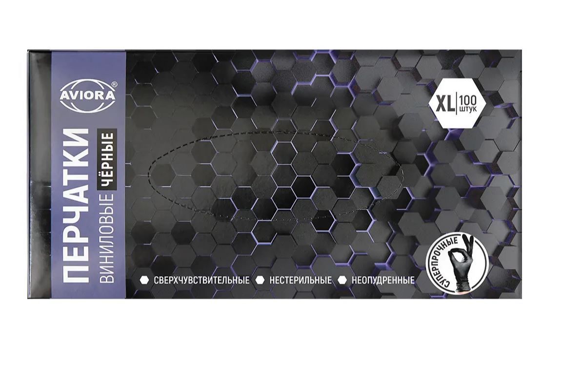 Перчатки смотровые виниловые неопудренные Aviora черные XL 4,5гр 50/500 купить оптом и в розницу в Перми с доставкой