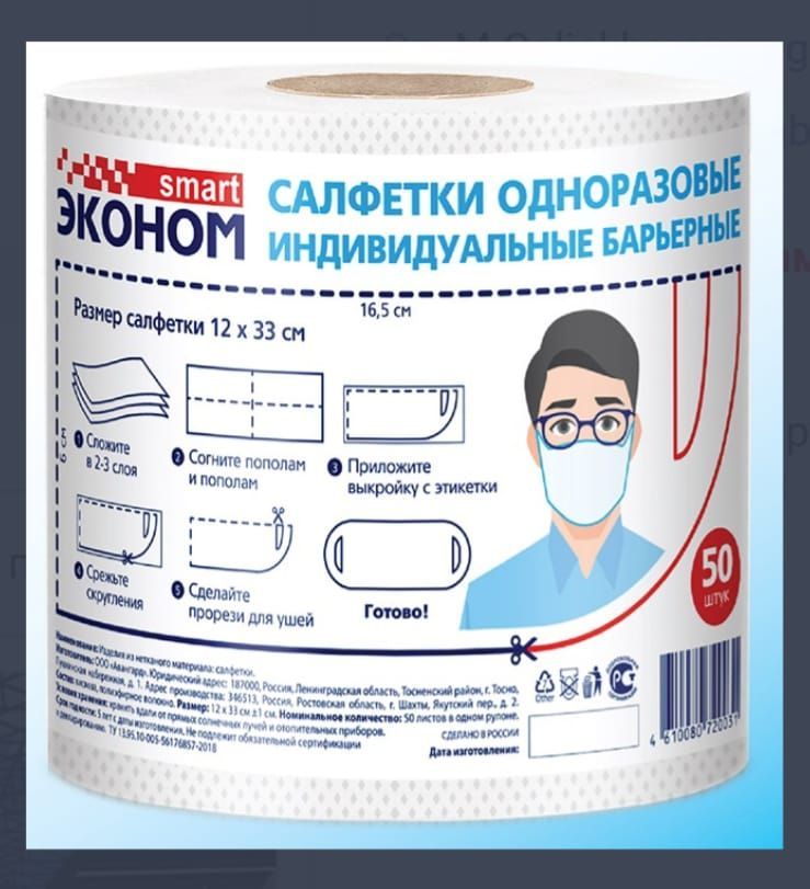 —Салфетка одноразовая индивид барьерная 12х33 спанлейс 40г/м2 № 50 рулон Эконом Smart 1/24
