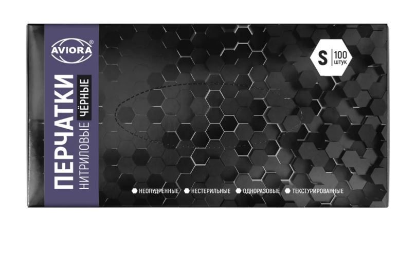 —Перчатки смотровые нитриловые неопудренные Aviora черные S 4гр 50/500