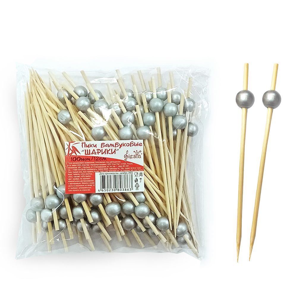 Пика для канапе Шарики серебро 12см (100шт) 1/50 купить в Перми с доставкой - УПАК.РФ