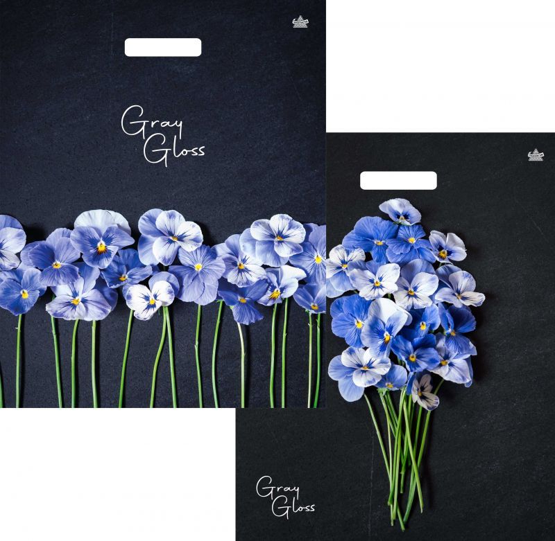 Пакет с вырубной ручкой (39х48)-50 Грэй Глосс Анютины глазки 50/500 купить в Перми с доставкой оптом и в розницу