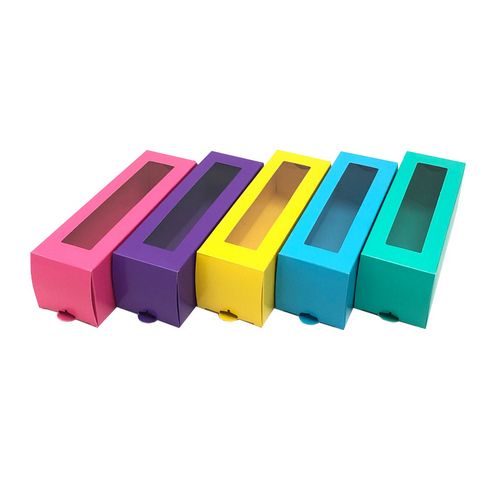 Коробка для макарун с окном185х60х60мм картон цветная 25/25