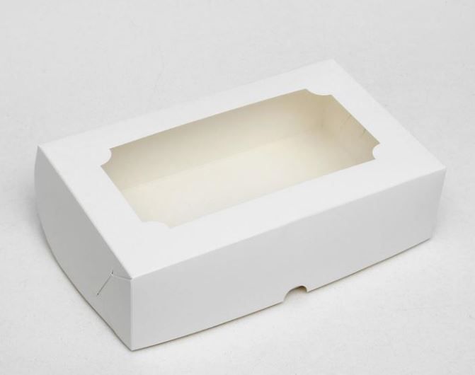 Коробка для сладостей с окном 250х150х70мм картон белая 5/200 купить оптом и розницу с доставкой в Перми