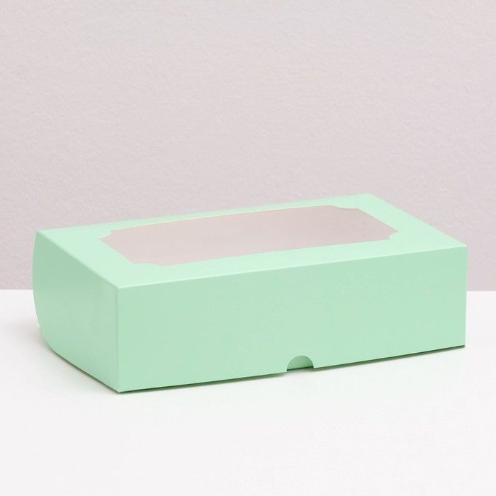 Коробка для сладостей с окном 250х150х70мм картон мятная 5/200 купить оптом и розницу с доставкой в Перми