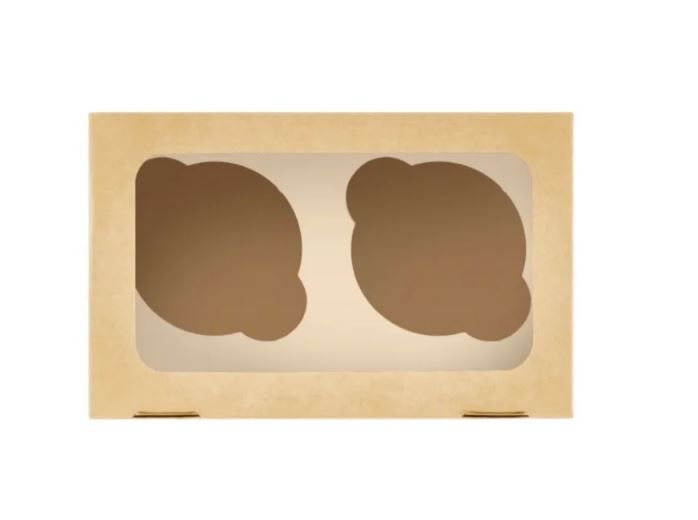 Коробка для капкейков/маффинов с окном 160х100х100мм на 2шт картон ECO MUF 2 DoECO 25/200 купить оптом и розницу с доставкой в Перми