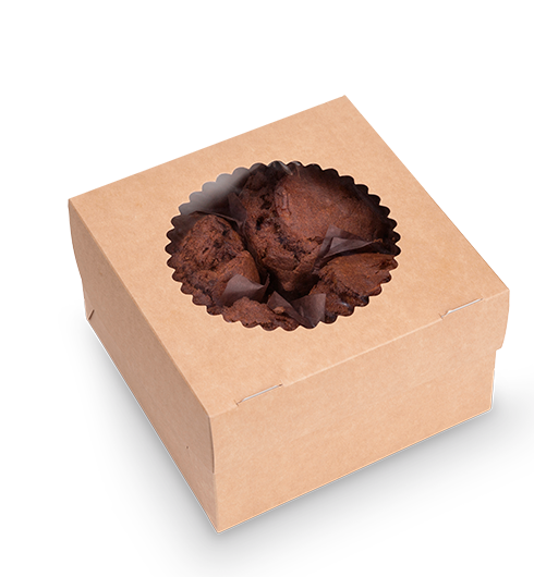 Коробка для капкейков/маффинов с окном 160х160х100мм на 4шт картон OSQ MUF 2 25/175 купить оптом и розницу с доставкой в Перми
