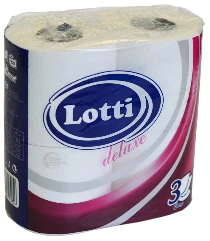 Туалетная бумага евро 3сл белая 4штх14м Премиум Лотти Делюкс (4шт) 1/12 купить от производителя в Перми