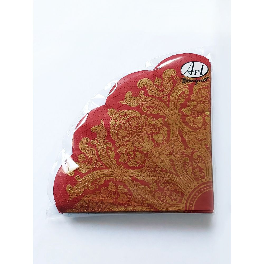 Салфетки 3-сл d 32 см Rondo Золотой орнамент на бордовом (12) 1/15