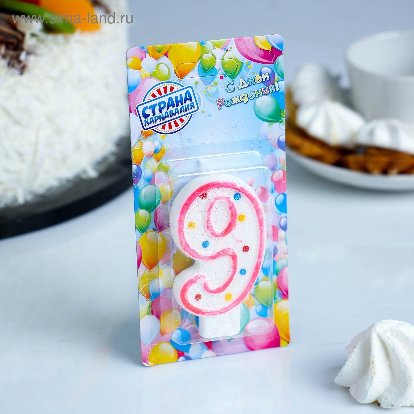 Свеча для торта Цифра 9 Цветные точки 1/12 оптом и в розницу в Перми, цены в каталоге с доставкой
