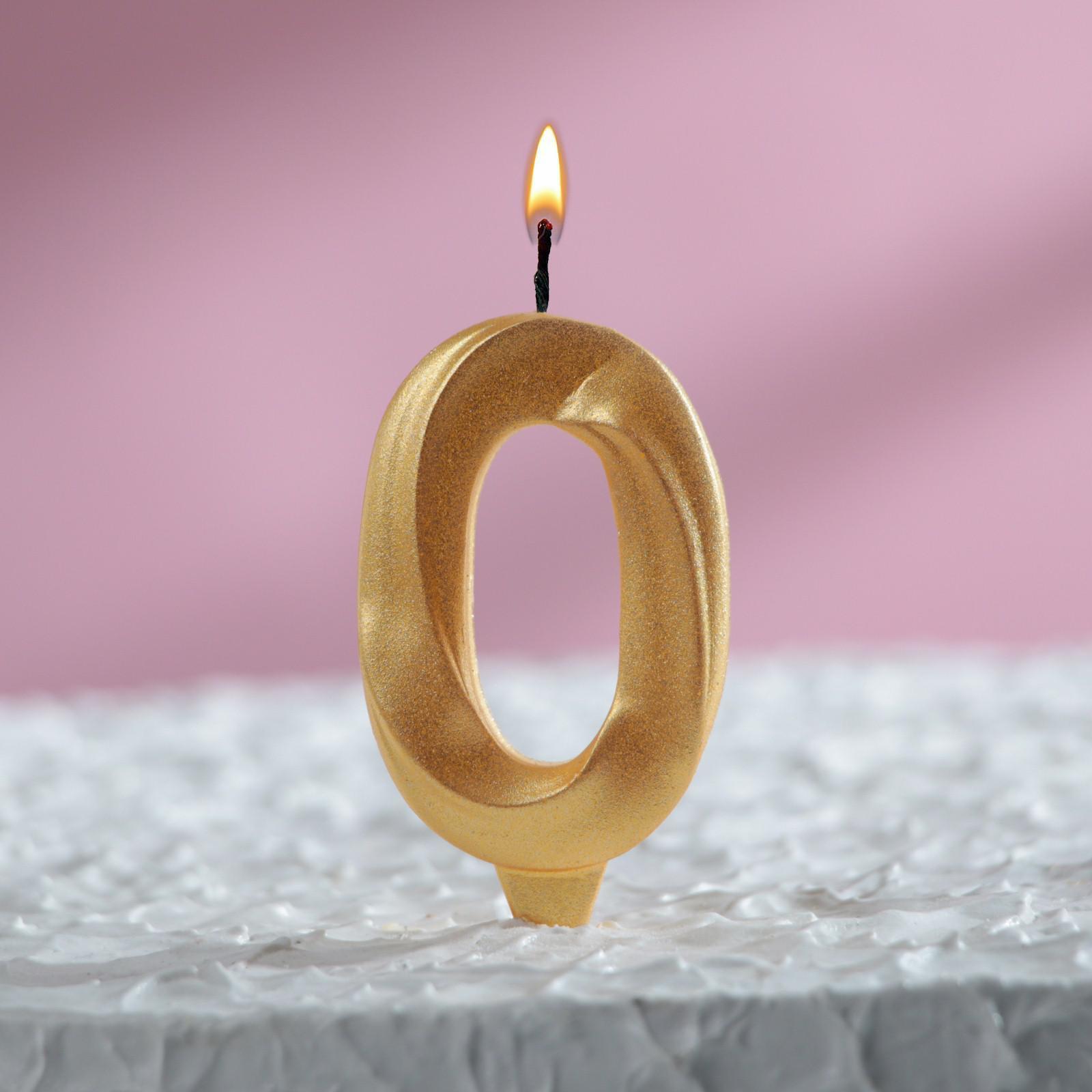 Свеча для торта Грань Цифра 0 золотая 1/100