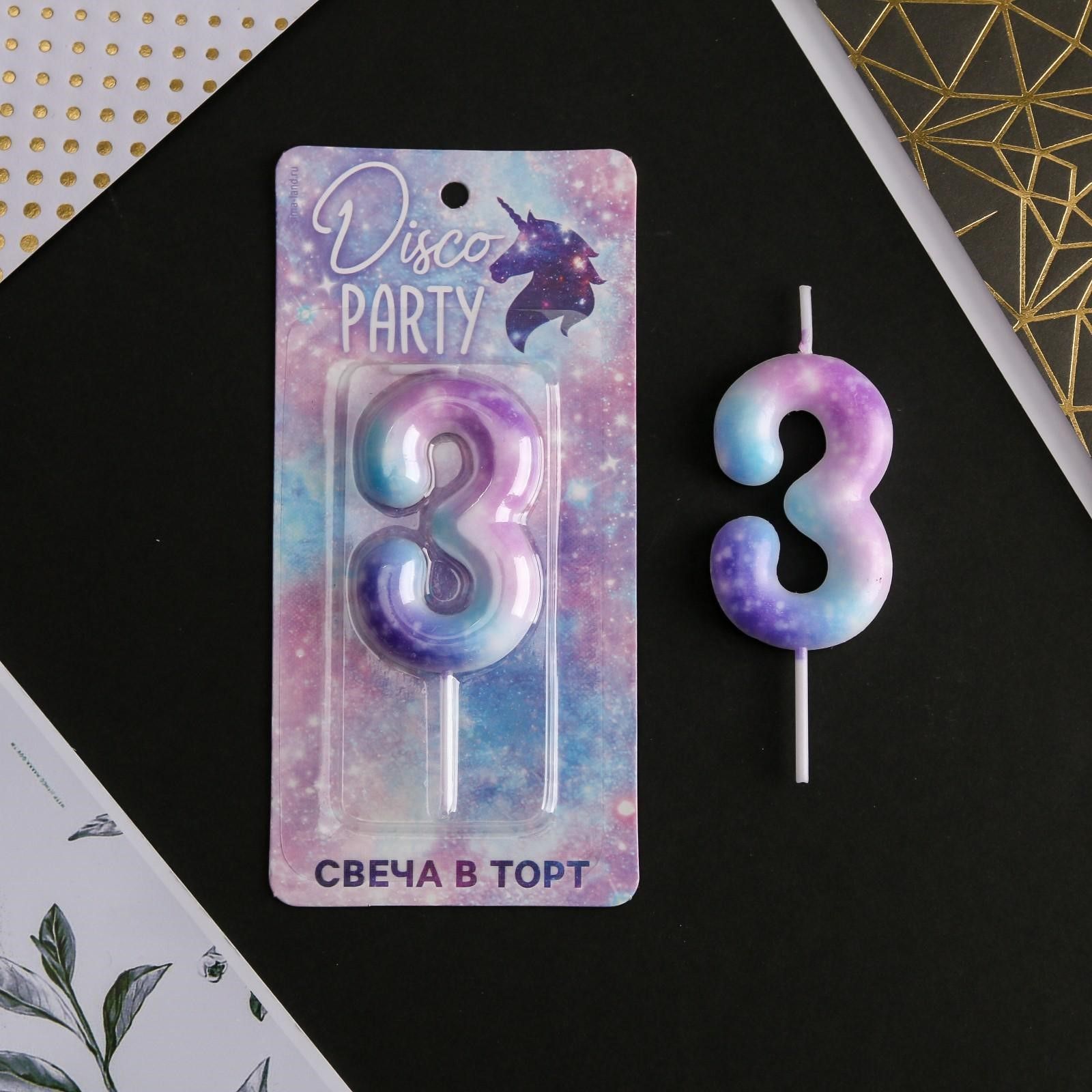 Свеча для торта Disco Party Цифра 3 1/600